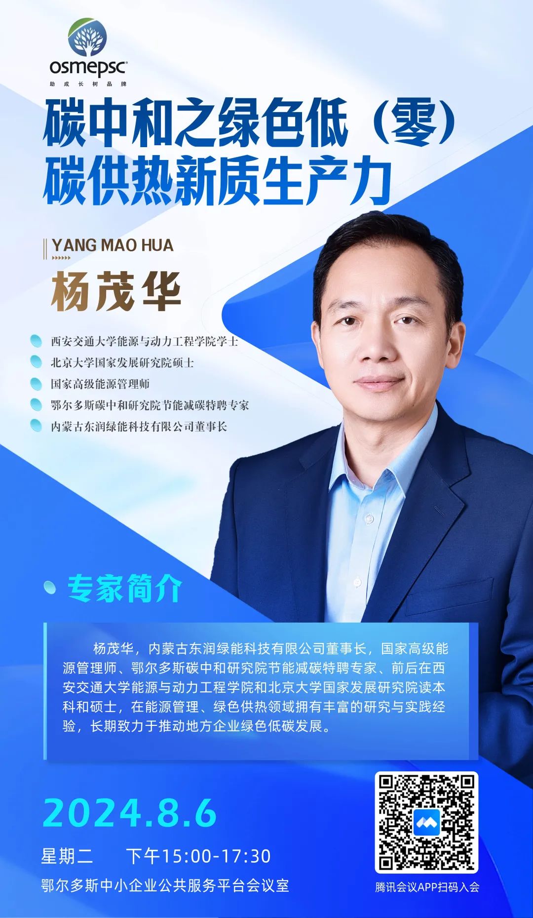簡介:內(nèi)蒙古東潤綠能科技有限公司董事長,國家高級能源管理師、鄂爾多斯碳中和研究院節(jié)能減碳特聘專家、前后在西安交通大學能源與動力工程學院和北京大學國家發(fā)展研究院讀本科和碩士,在能源管理、綠色供熱領域擁有豐富的研究與實踐經(jīng)驗,長期致力于推動地方企業(yè)綠色低碳發(fā)展。