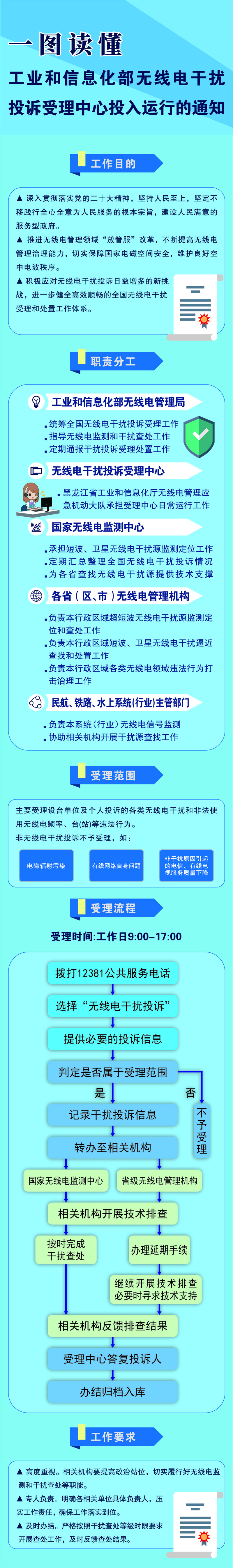一圖讀懂《關(guān)于工業(yè)和信息化部無線電干擾投訴受理中心投入運行的通知》
