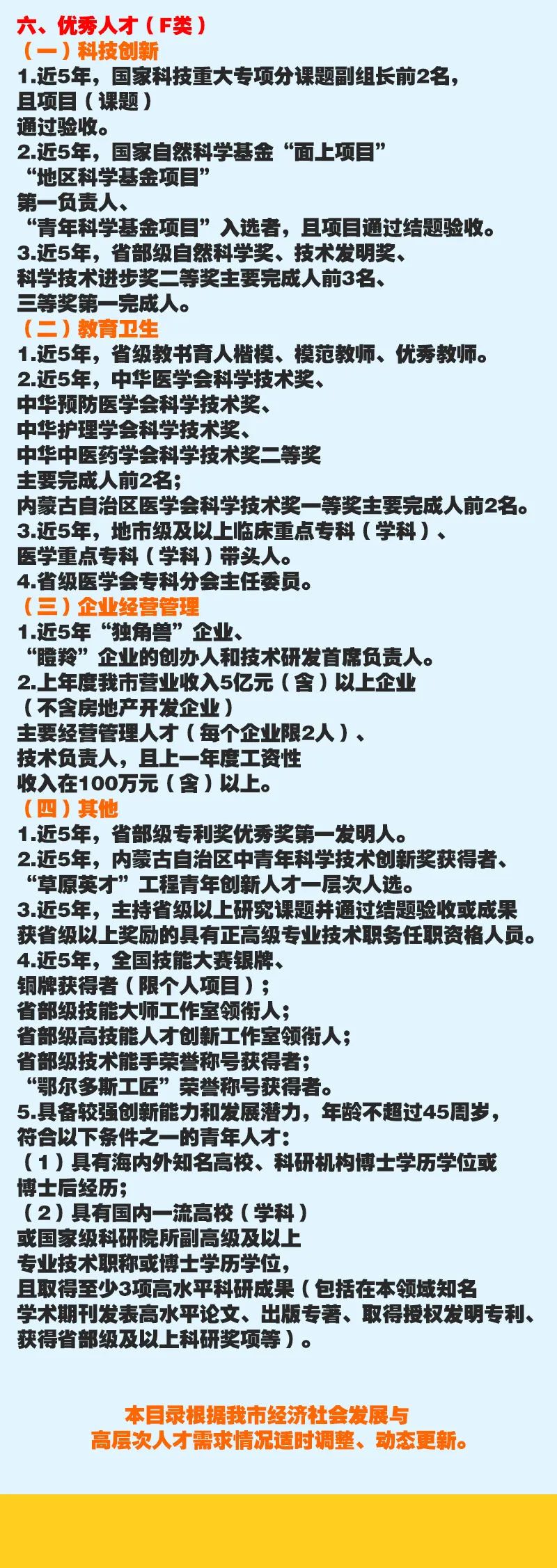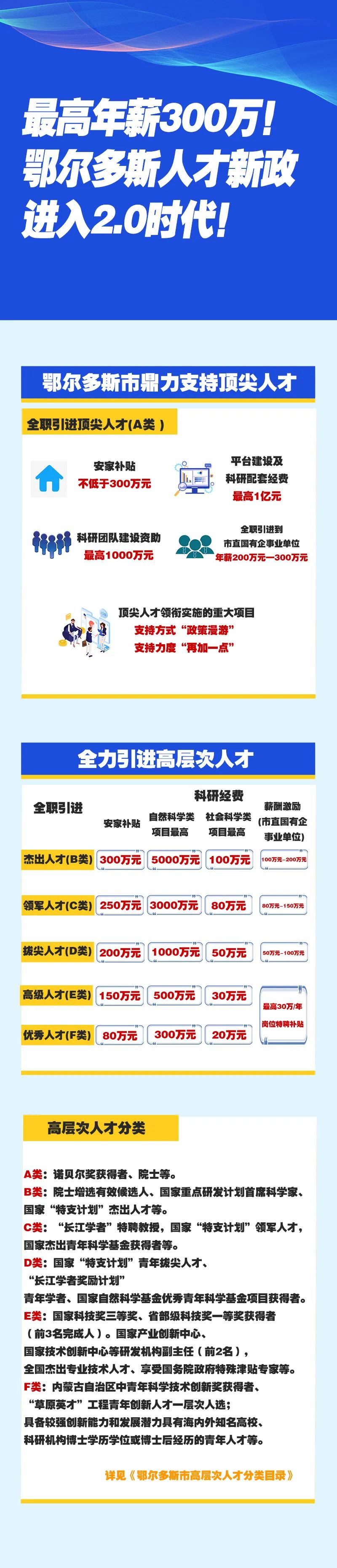據(jù)了解,鄂爾多斯“人才新政2.0版”已于2023年11月17日起施行,隨政策一同發(fā)布的還有涵蓋六大類高層次人才類型的《鄂爾多斯市高層次創(chuàng)新人才目錄》。為使人才新政盡快惠及各類人才,鄂爾多斯市委人才工作領(lǐng)導(dǎo)小組辦公室會(huì)同市科技局、市教體局、市人社局、市住建局等8個(gè)部門協(xié)同制定了28項(xiàng)配套實(shí)施細(xì)則,近期將陸續(xù)印發(fā)實(shí)施。