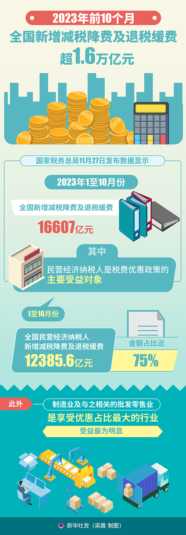 圖表:2023年前10個月全國新增減稅降費及退稅緩費超1.6萬億元